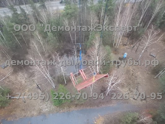 Демонтаж радиорелейной башни связи, ранее принадлежащей ПАО РОСТЕЛЕКОМ, был выполнен по заказу новых собственников в Нижегородской области. Высота демонтируемой вышки связи составляла более 100м. На стометровой башне находилась антенна высотой с пятиэтажный дом (15 метров). Сначала был выполнен демонтаж самой антенны, затем антенных площадок. Демонтируемые антенны и площадки опускались на землю методом промышленного альпинизма, применение автокрана было исключено. Работы проводились в межсезонье - когда на земле была плюсовая температура и шёл дождь, наверху башни уже был минус и конструкции покрывались льдом. Интересна также конструкция сооружения - совмещение принципа башни и АМС, когда свободностоящая башня усилена вантовыми растяжками, как сооружение антенно-мачтового типа.